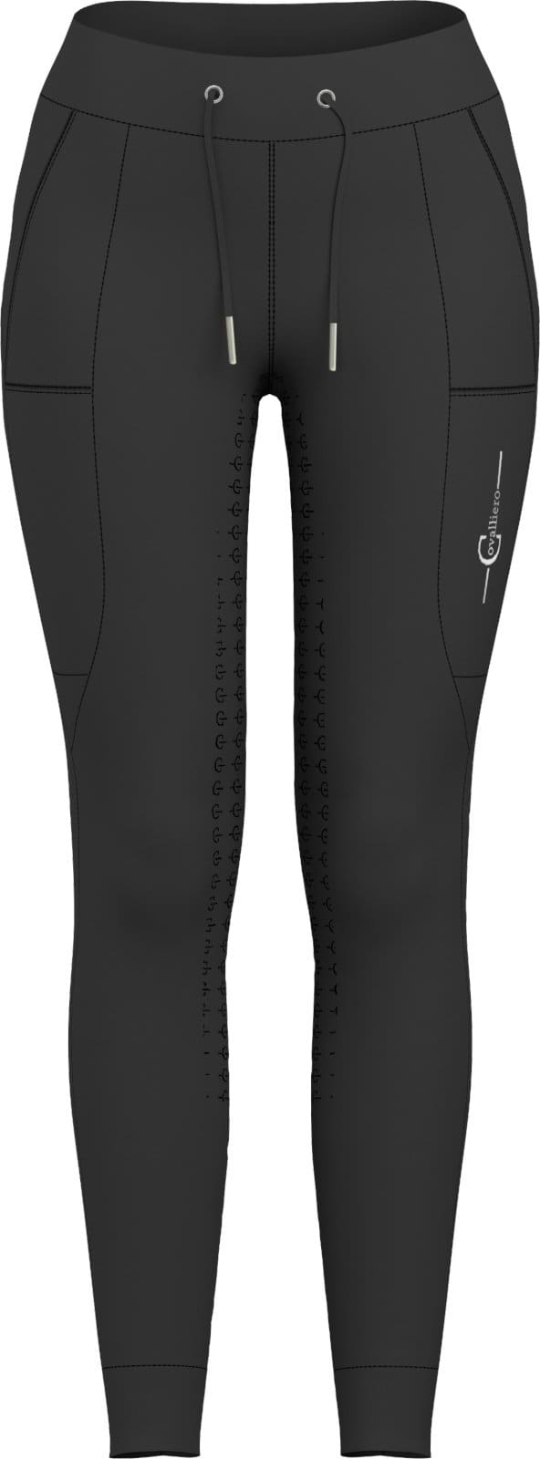 - inne cechy legginsów jeździeckich: bardzo szeroki komfortowy pas z ozdobną lamówką, 4-kierunkowa guma, pełny lej silikonowy z logiem Covalliero