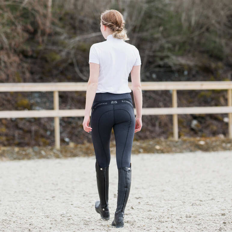 Wypróbuj parę łatwych do założenia legginsów jeździeckich zamiast tradycyjnych bryczesów, aby uprzyjemnić sobie czas spędzony w siodle. Wygodne legginsy jeździeckie z pełnym silikonowym lejem to najlepszy wybór na każdą jazdę latem, bez względu na rodzaj treningu. Miękkie legginsy posiadają wyraźny pasek z logo B Vertigo na udach i pod talią, co nadaje im sportowego charakteru. Elastyczna rozmiarówka umożliwia dobranie legginsów do każdej sylwetki.