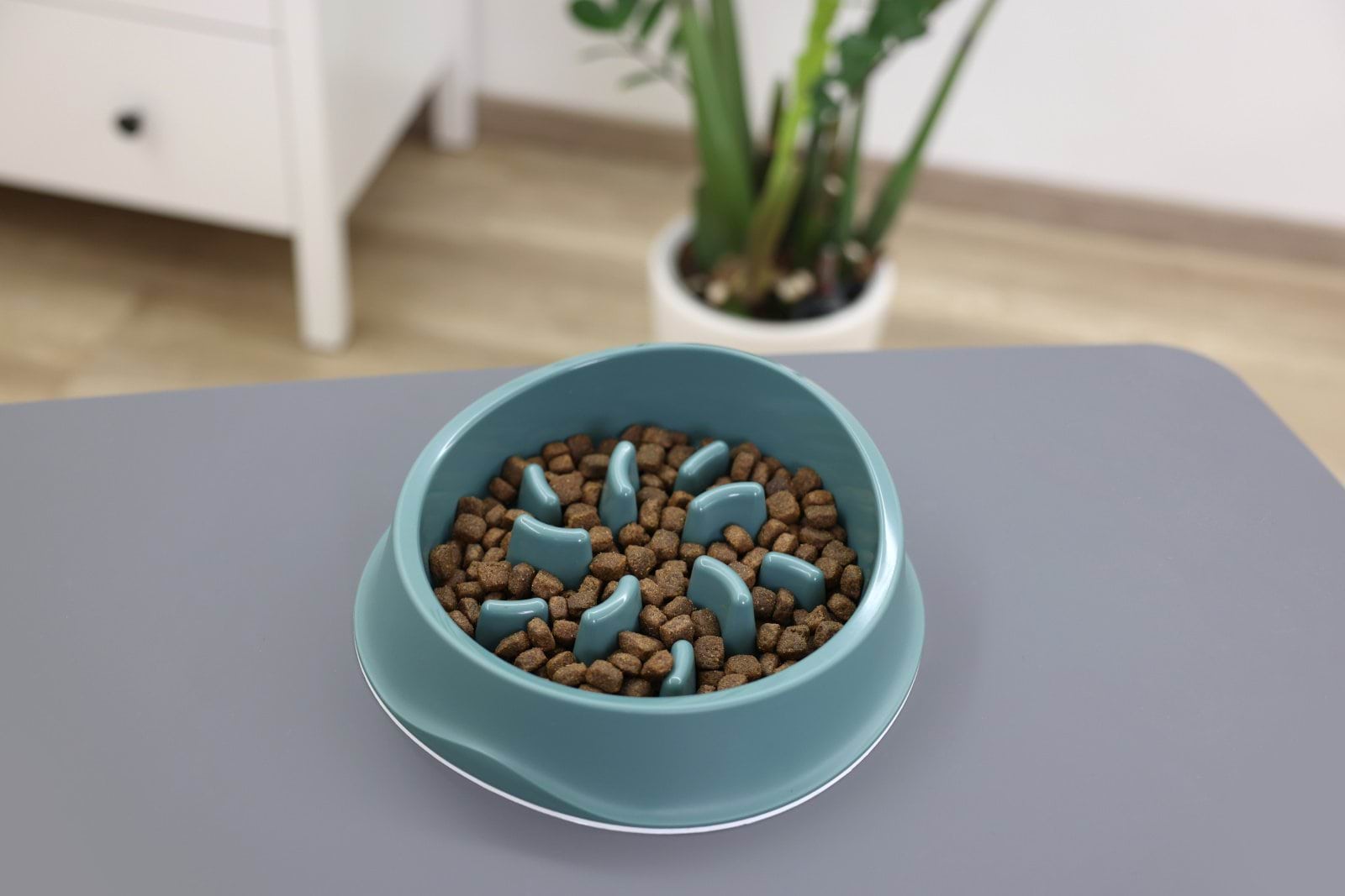 - specjalna konstrukcja miski do karmienia ogranicza pośpieszne jedzenie i picie