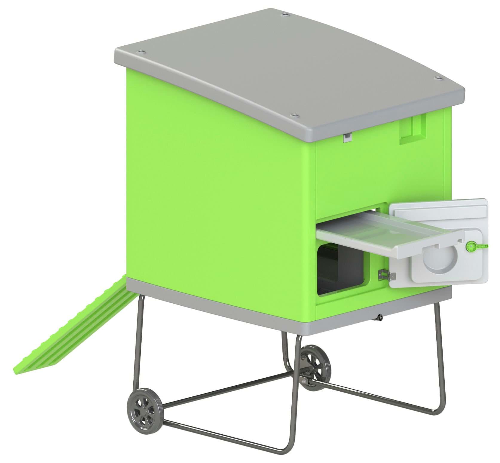- Łatwość czyszczenia wewnątrz np. miotłą lub wężem ogrodowym. odchody spływają przez otwór na spodzie wewnętrznym