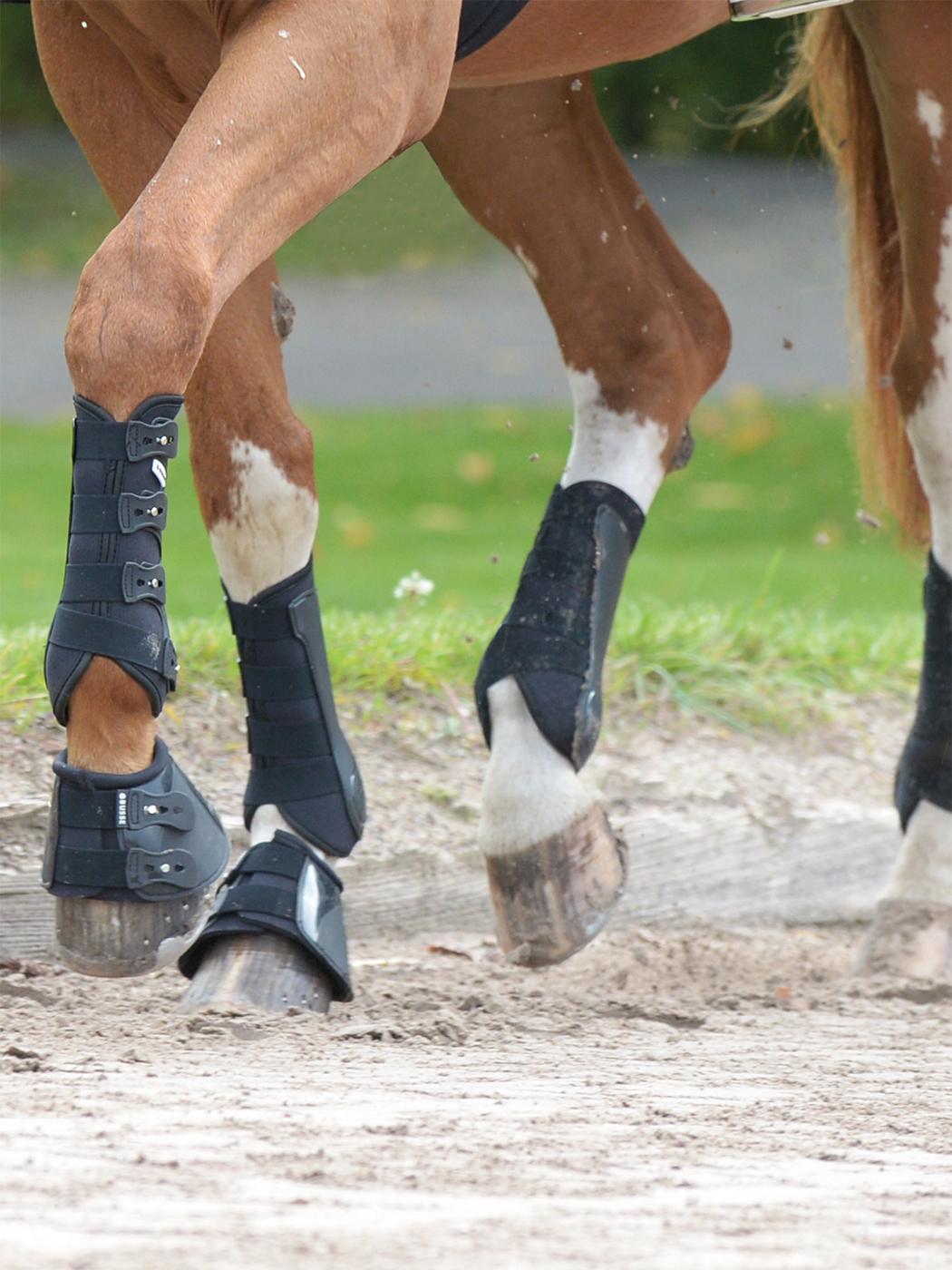 - nadają się na kończyny przednie i tylne, dla tylnych należy z reguły wybrać ochraniacze o jeden rozmiar większe niż dla przednich