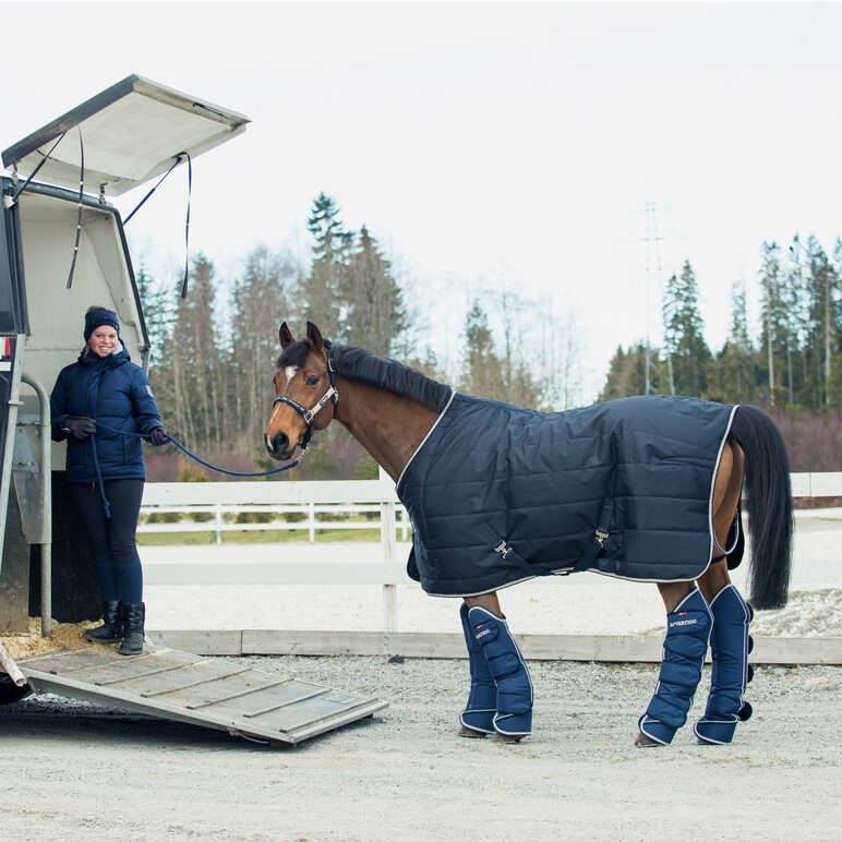 Elastyczne, a jednocześnie wytrzymałe ochraniacze transportowe zapewniają wsparcie podczas podróży, dzięki odpornym na rozerwanie powłokom zewnętrznym podszytym miękką pianką oraz dużej wysokości. Ponadto, dolna część ochraniacza jest wzmocniona w celu ochrony przed urazami spowodowanymi przez podkowy. Odblaskowa lamówka z tylu pomaga w zachowaniu widoczności po ciemku. Te solidne ochraniacze transportowe świetnie sprawdzają się w każdej pogodzie, zapewniają bezpieczeństwo i pomogą Twojemu koniowi dotrzeć na miejsce przeznaczenia w fantastycznej formie.