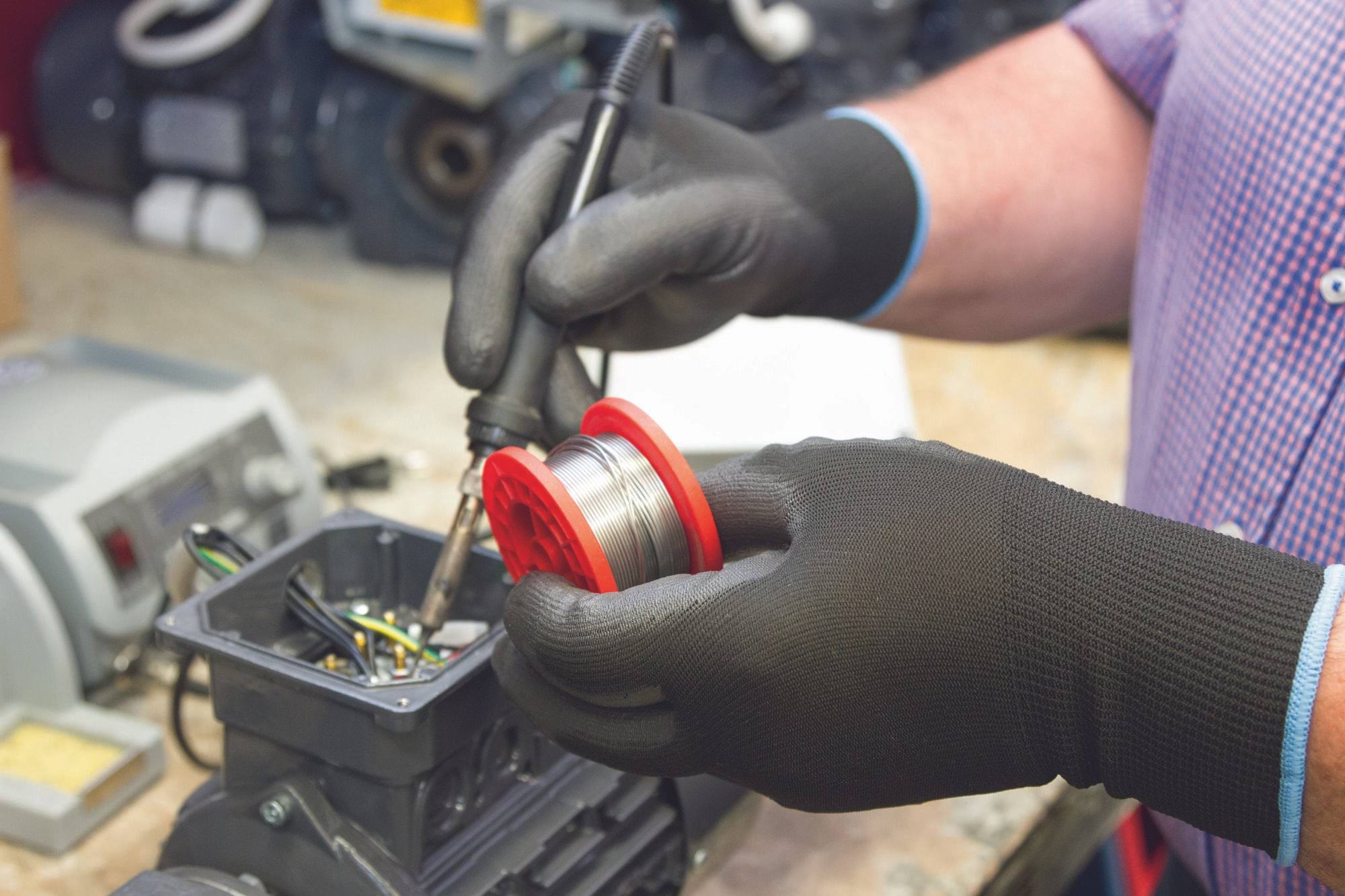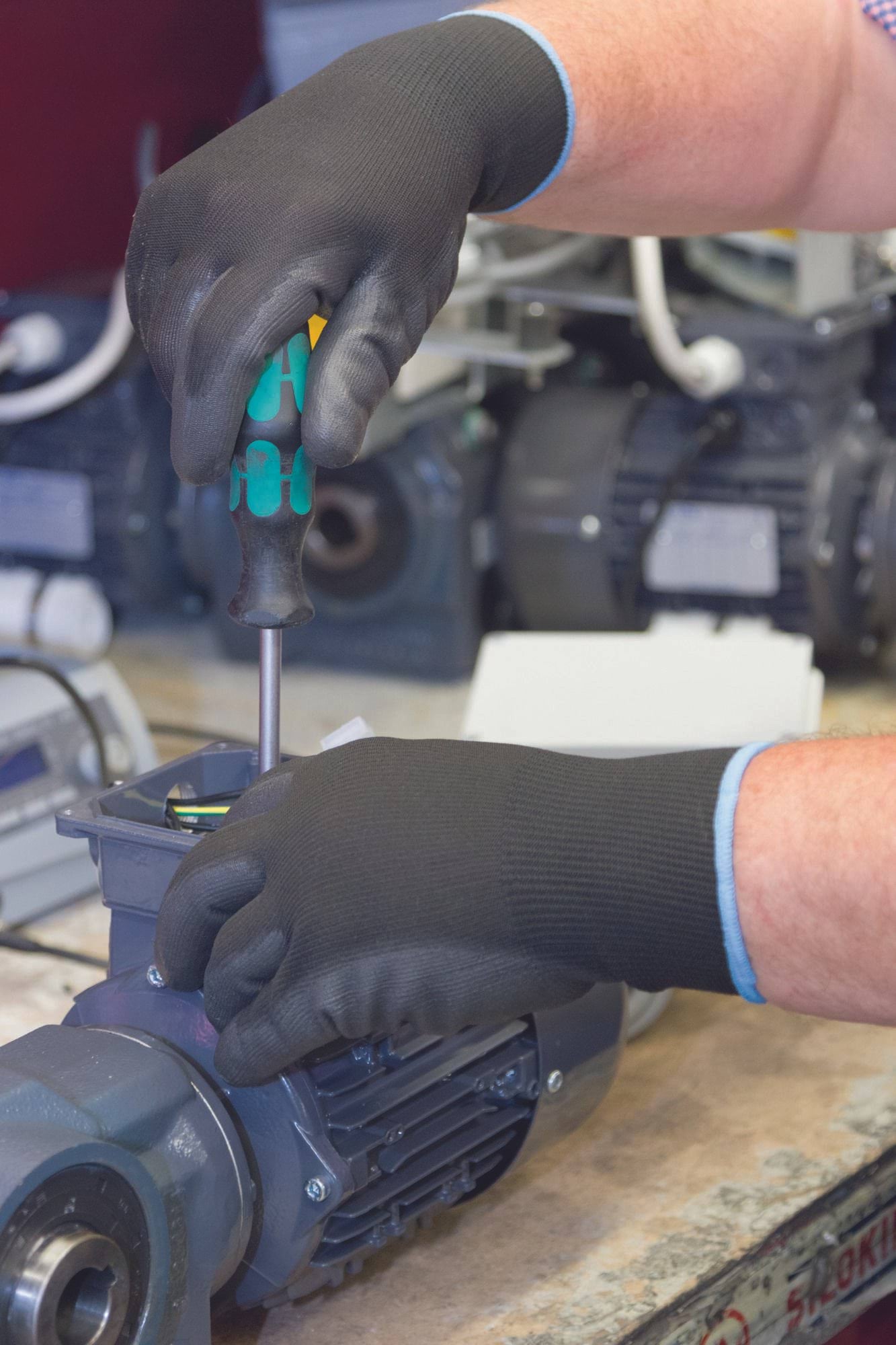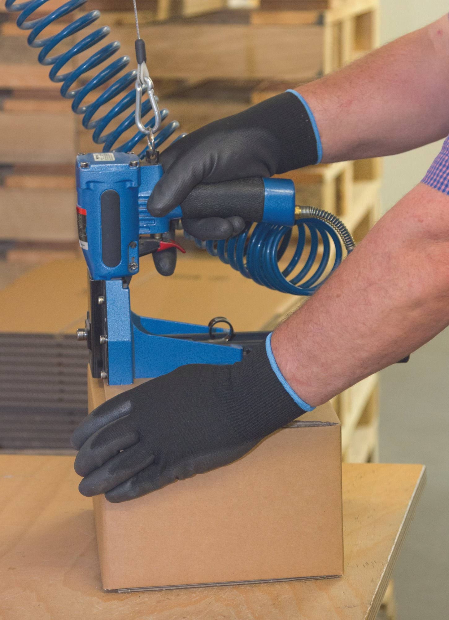 - Bezszwowe rękawice pokryte powłoką poliuretanową.