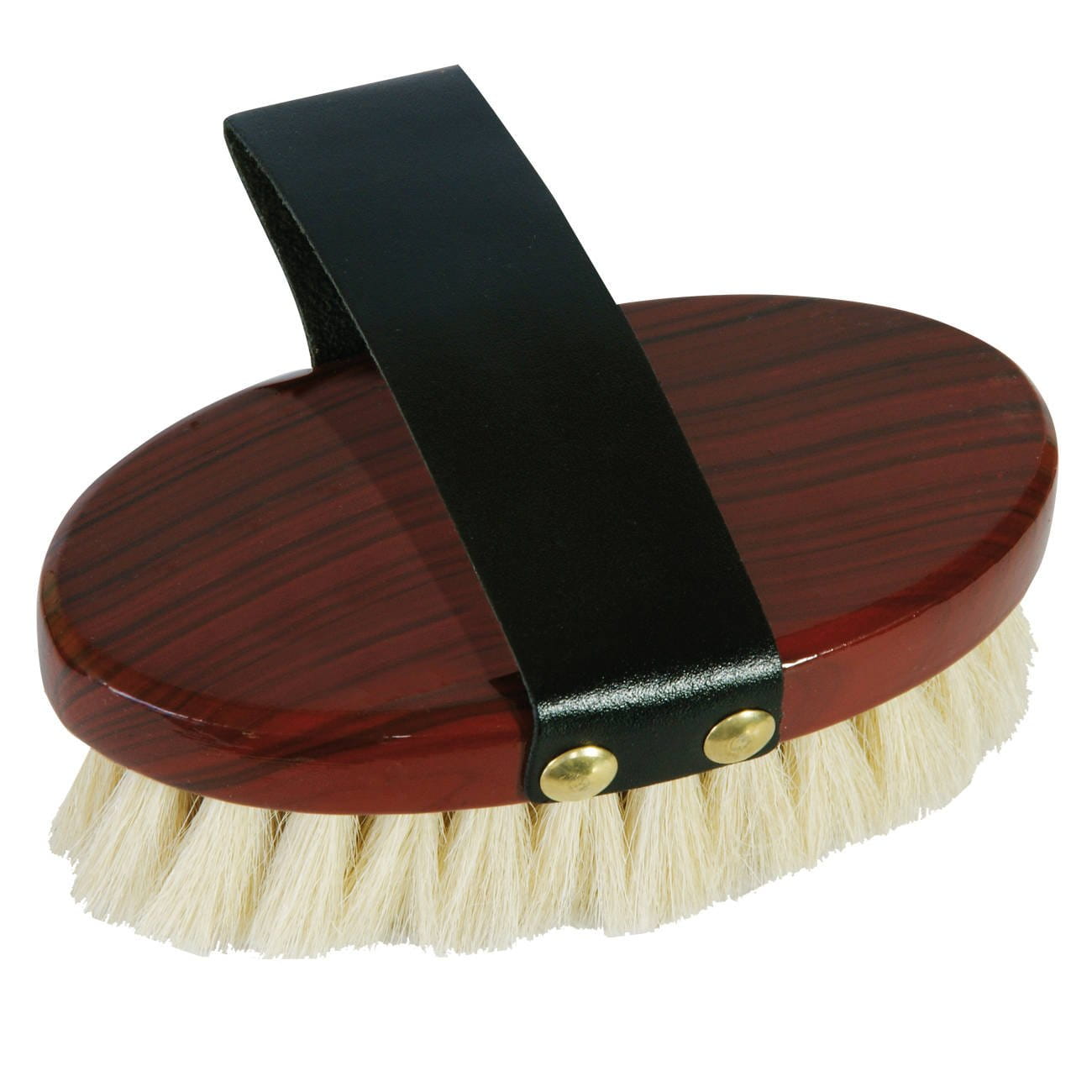 - szczotka z naturalnej, miękkiej koziej sierści o długości 2,5 cm, połączonej z drewnem imitującym mahoń