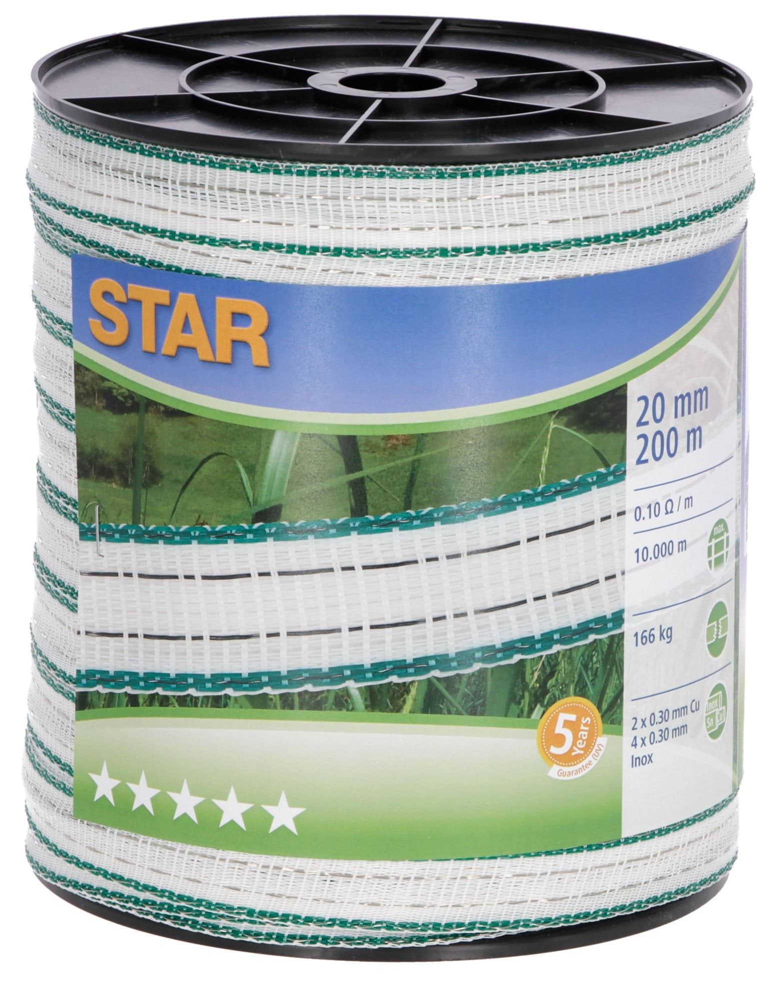 Taśma ogrodzeniowa STAR, 200 m x 20 mm, biało-zielona, Kerbl