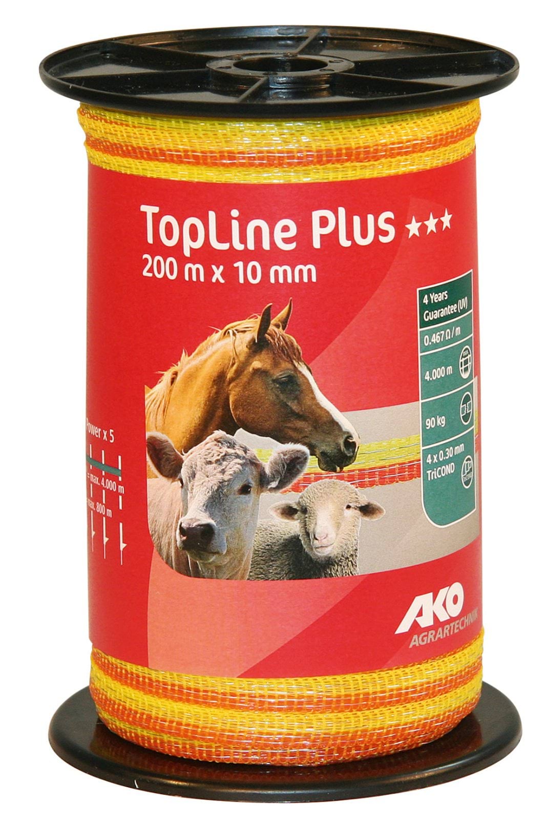 Taśma ogrodzeniowa TOP LINE PLUS Tricond, 200 m x 10 mm, żółto-pomarańczowa, AKO