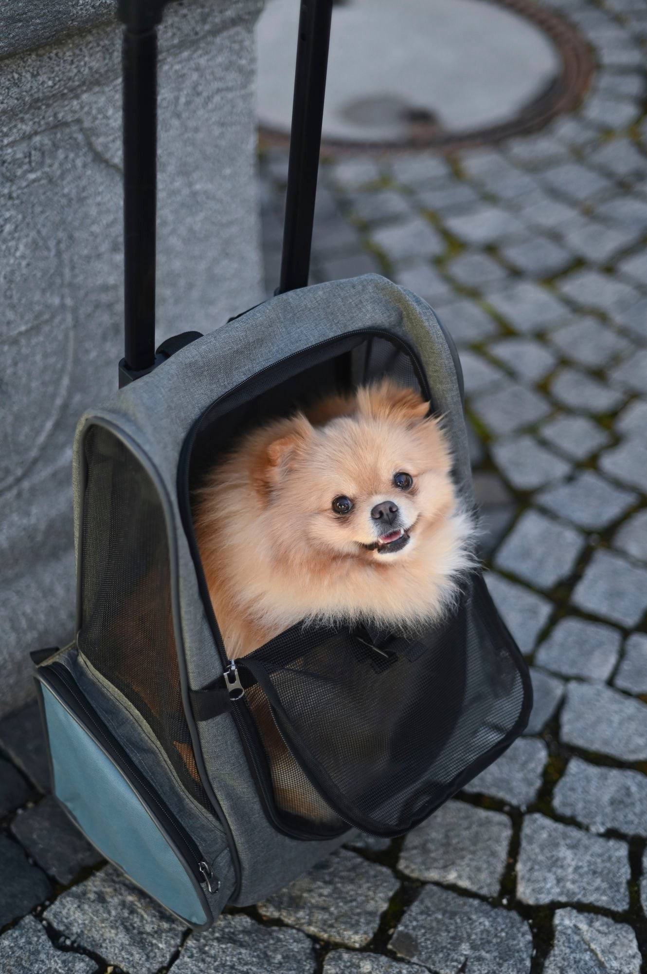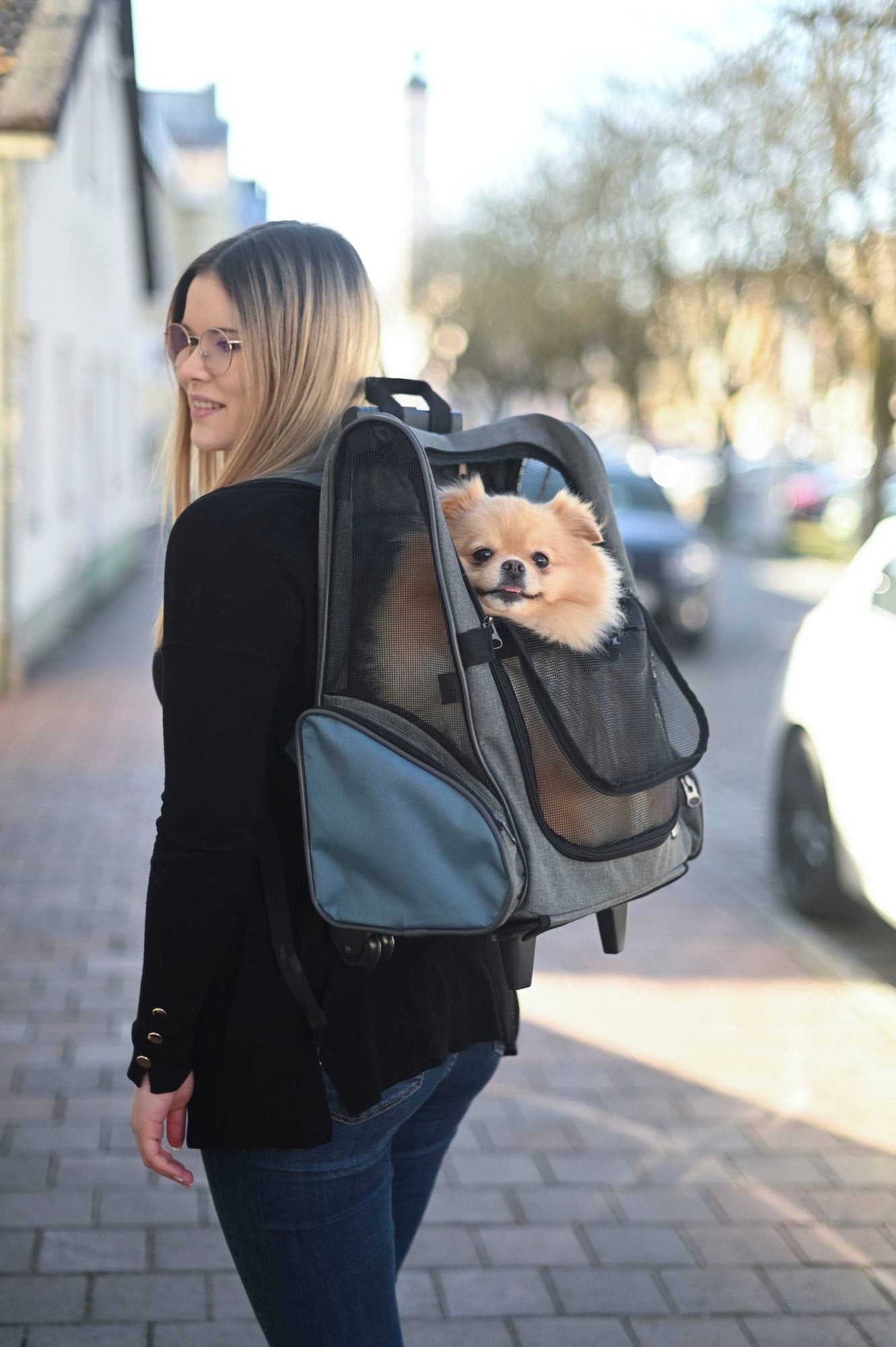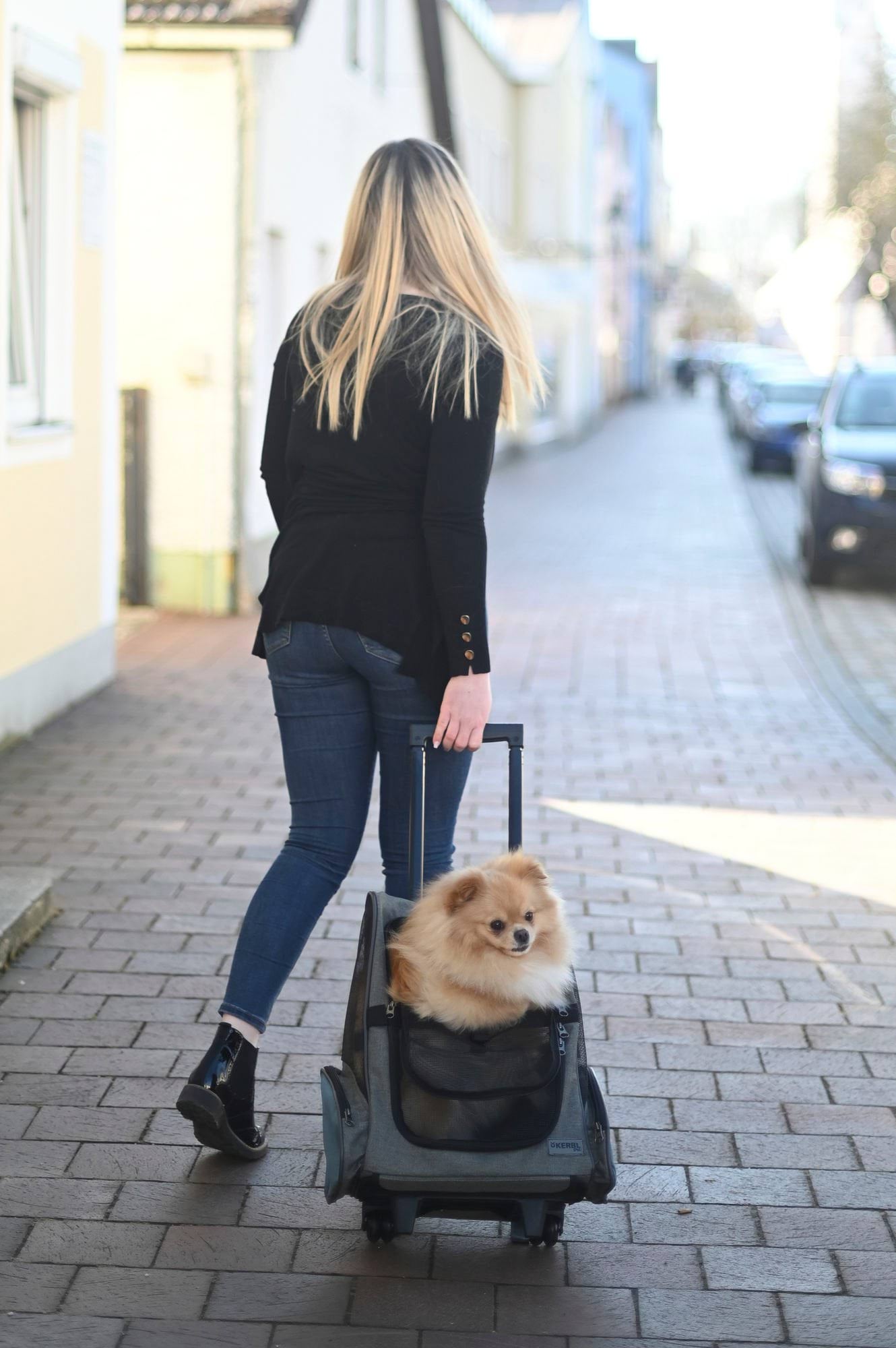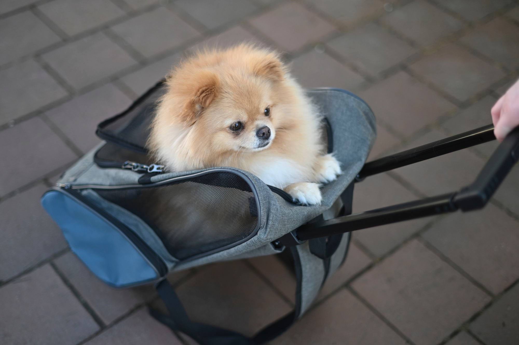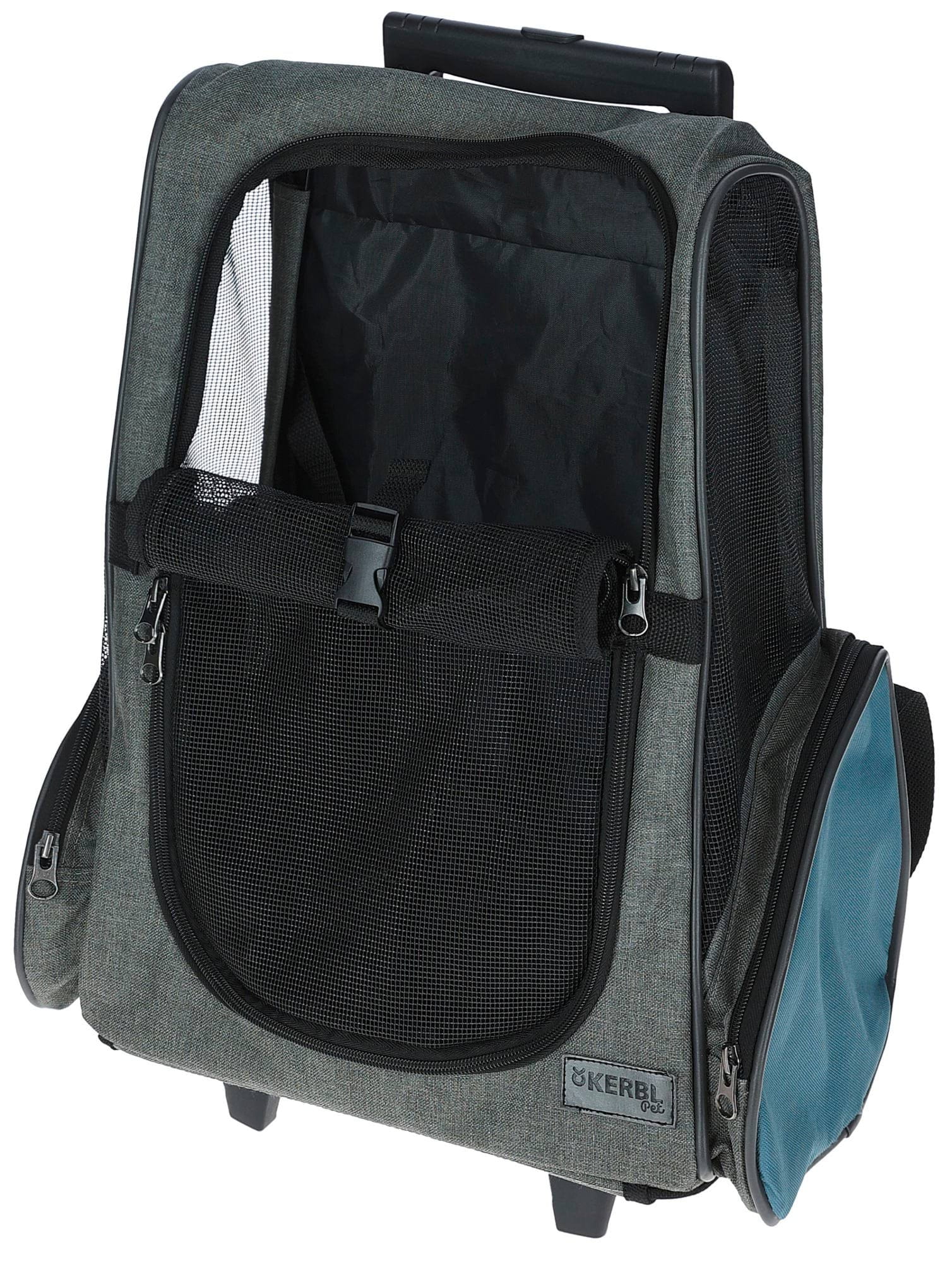 Torba podróżna na kółkach dla psa Vacation, 41 x 26 x 55 x 103 cm, szaro/niebieska, Kerbl