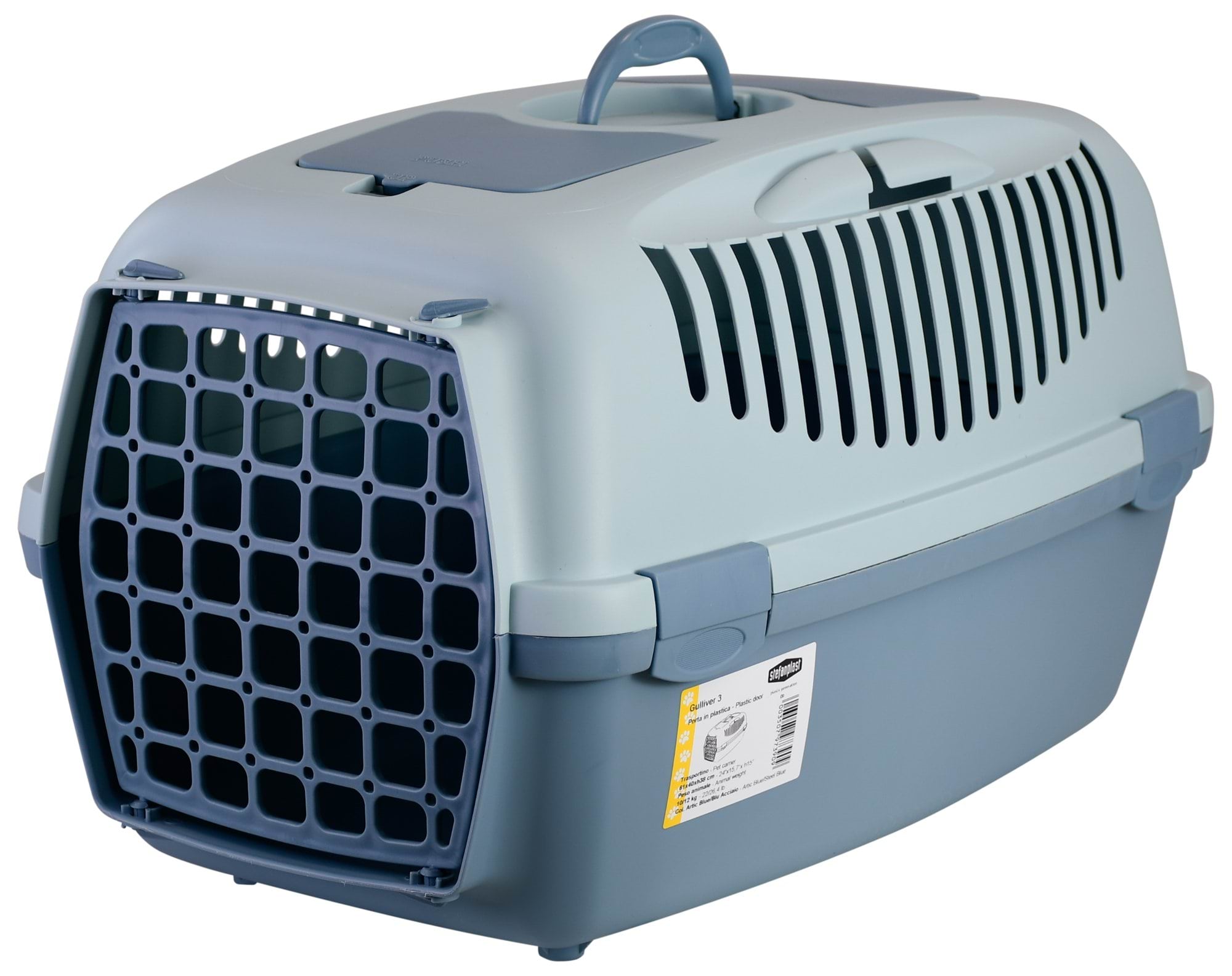 Transporter Gulliver 3 z plastikowymi drzwiczkami, 61 x 40 x 38 cm, niebieski/szary, 12 kg, Stefanpl