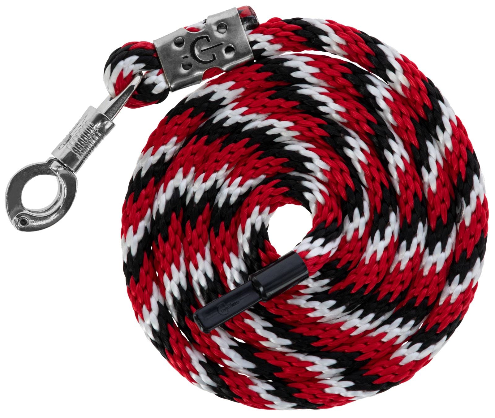 Uwiąz dla konia Mustang, bezpieczny karabińczyk, czerwony/czarny/biały, 200 cm, Covalliero