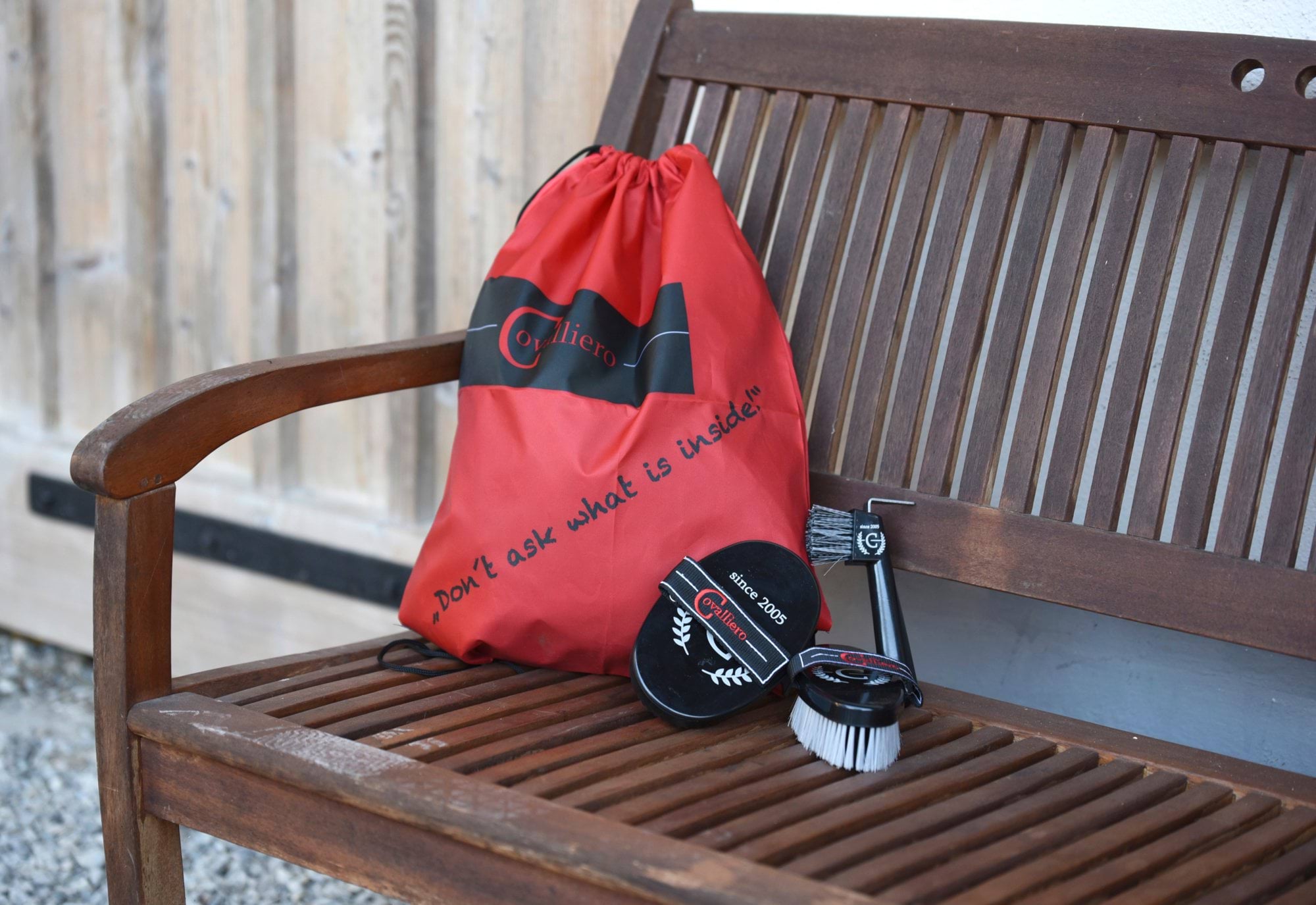 Worek z zestawem akcesoriów do czyszczenia konia z logo, czerwony/ czarny, Covalliero